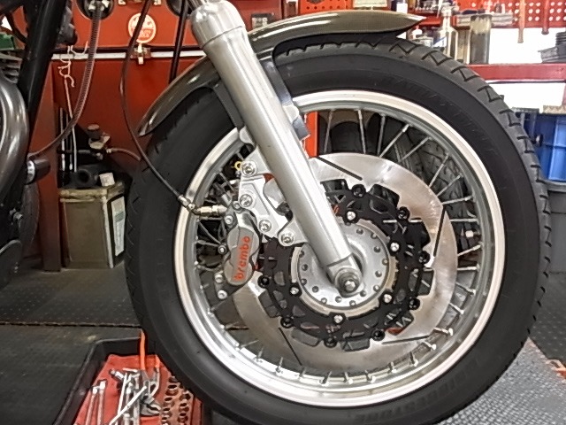 ボアエースさんトコのパーツを使用してブレンボキャリパー取り付け。