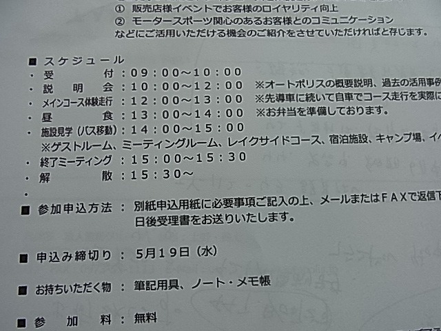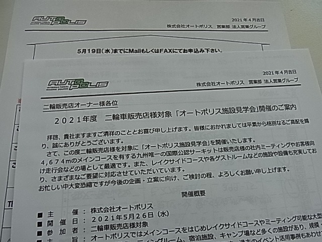 オートポリスさんより「二輪販売店対象」施設見学会の案内が届きました。