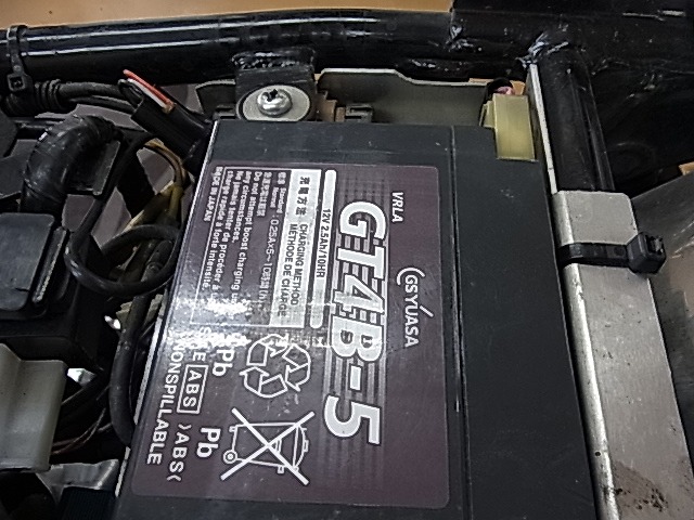 バッテリーが弱っているようで整備中に充電します。