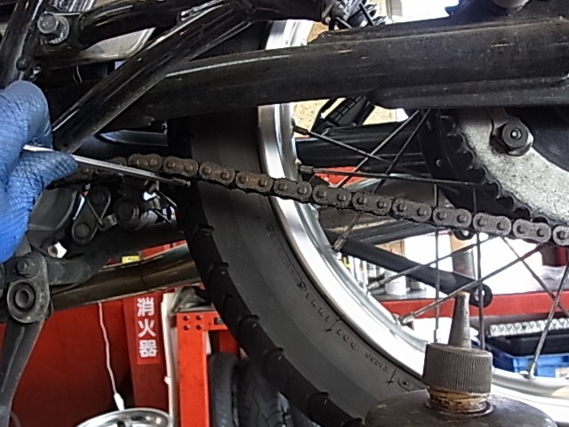 チェーンがかなり弛んでいました、チェーン清掃&注油。
