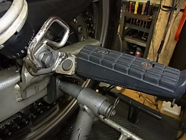 初期型のタンデムステップはスイングアーム固定。