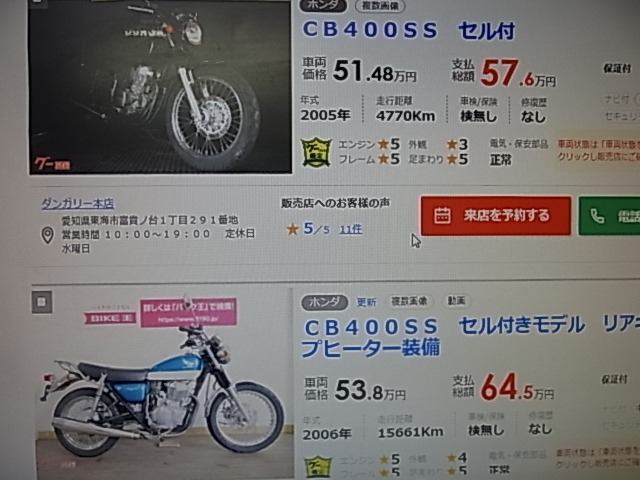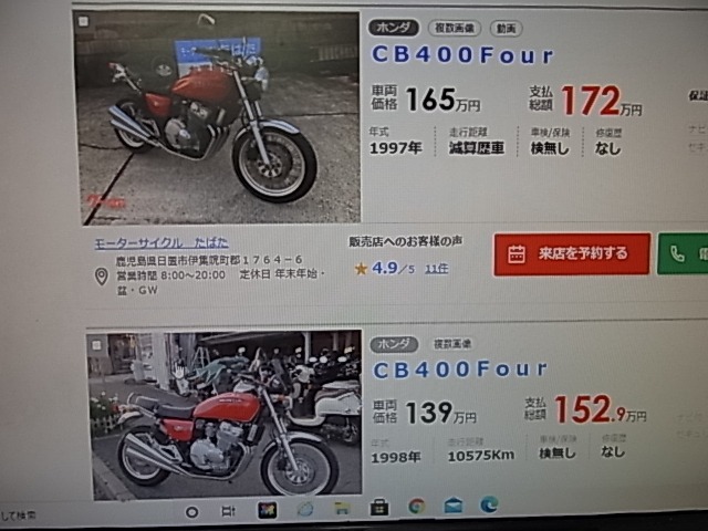 確かに。。。400cc中古車の価格が上がっています。