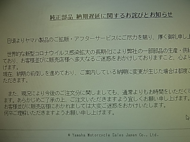遅い、遅すぎるのでY-Doで納期情報確認、8月2日ですとぉ。。。