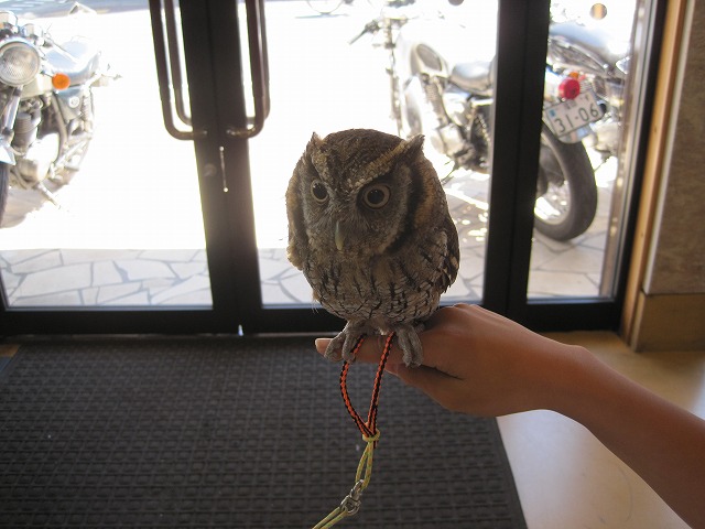 梟さんとご一緒に。 フクロウ好きの息子、店に呼ぶ。