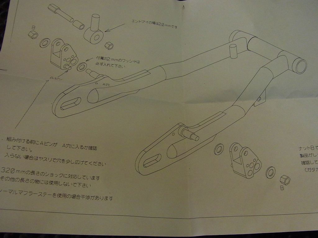 スイングアーム垂れ角が大きくなりボルトと干渉。
