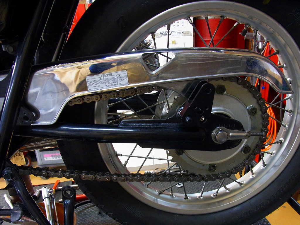 リアサス取り付けでナットとチェーンケースが干渉の為に加工。