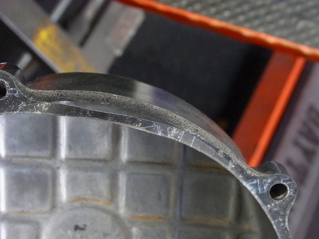 ケースカバーガスケット、内側に一部落ち込んでおりました。