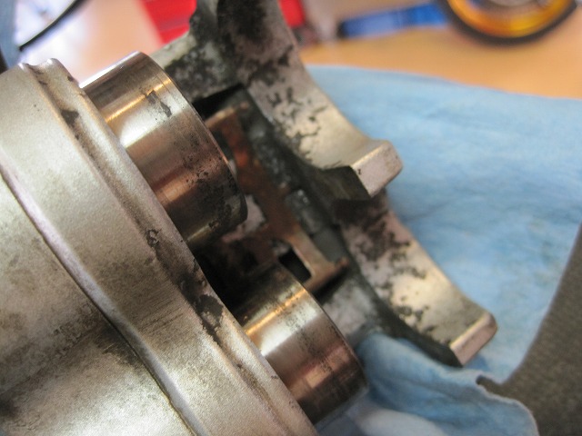 古いグリスが固まり中々取れない…。
