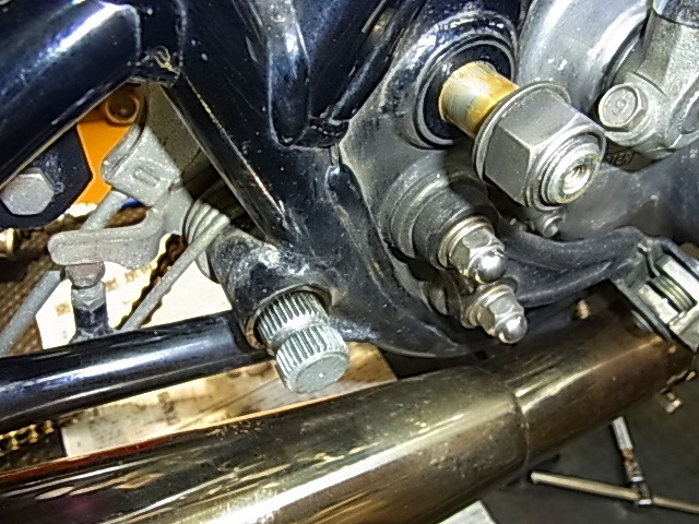 確認後、スイングアームピボットグリス注入。。」