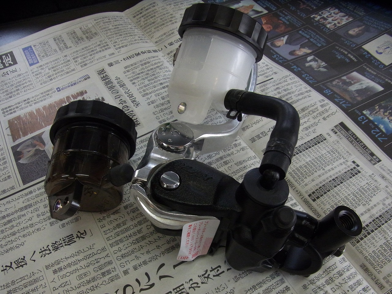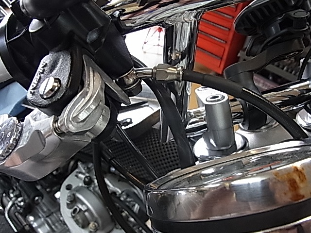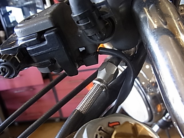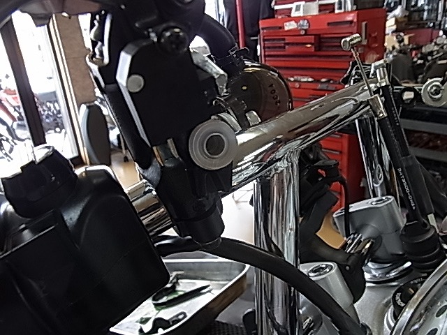 ノーマルマスターシリンダーでもハンドル交換するとホース、パンパン。