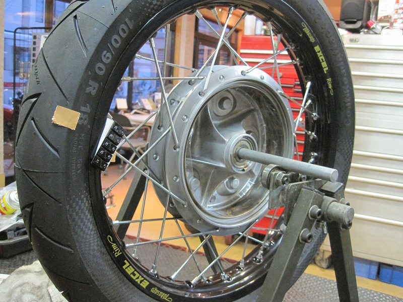 フロントホイール組み立て&リム張りバランス。