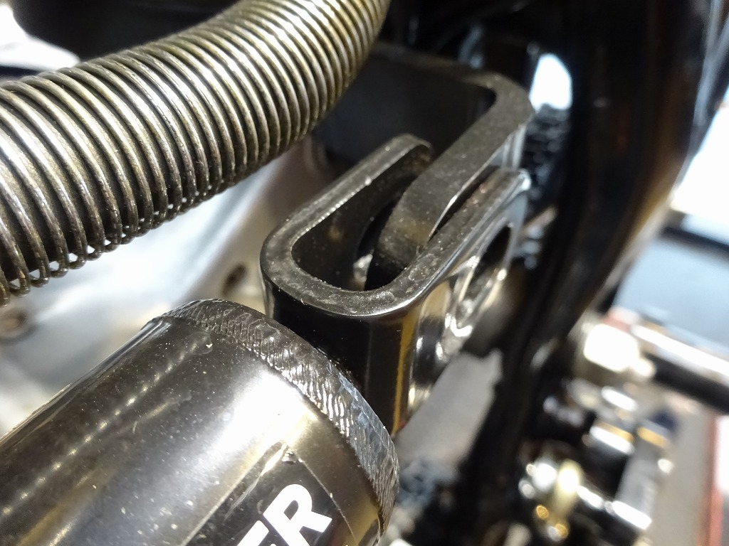 右上リアサス取り付け部、以前締め付けすぎでネジ山を飛ばした形跡。