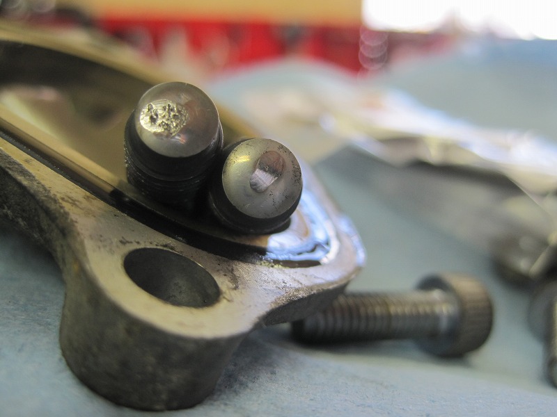 アジャストスクリュー、一本虫食いで交換、もう一つは修正再使用。