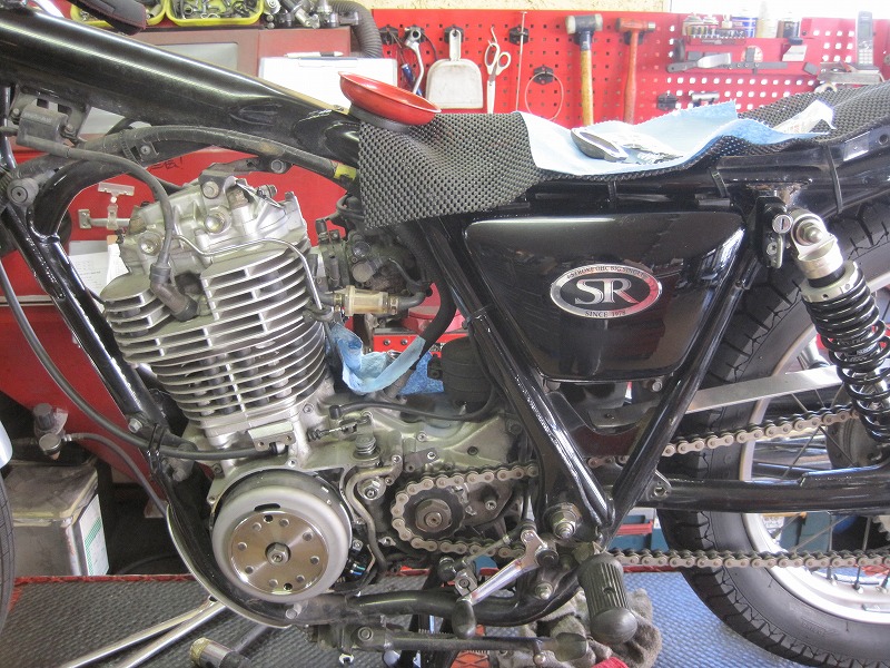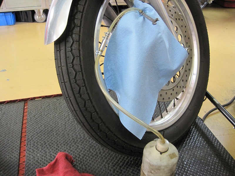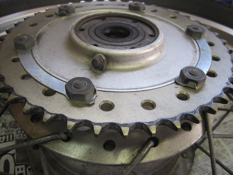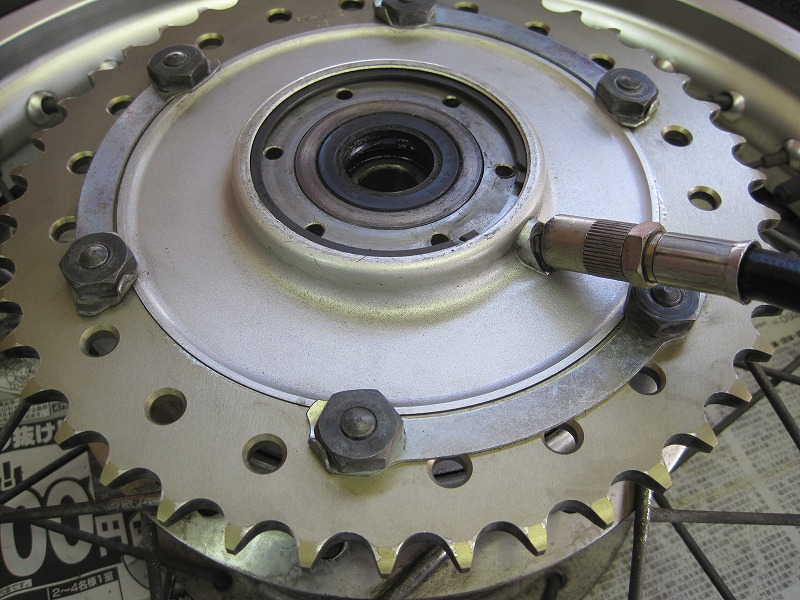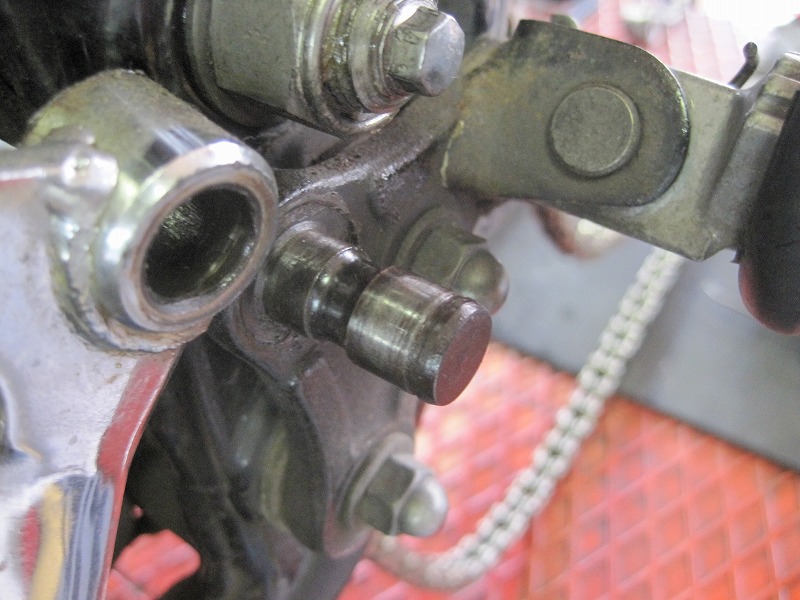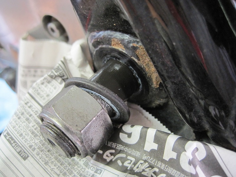 スイングアームピボットシャフト、抜けるのを確認後グリス注入。