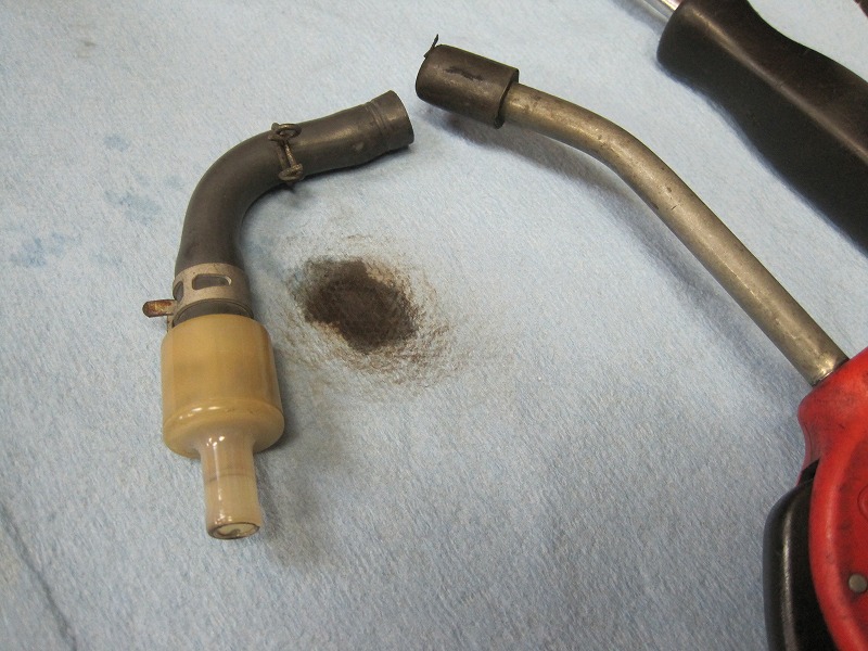 ホースを外しフィルターにエアを通す…。