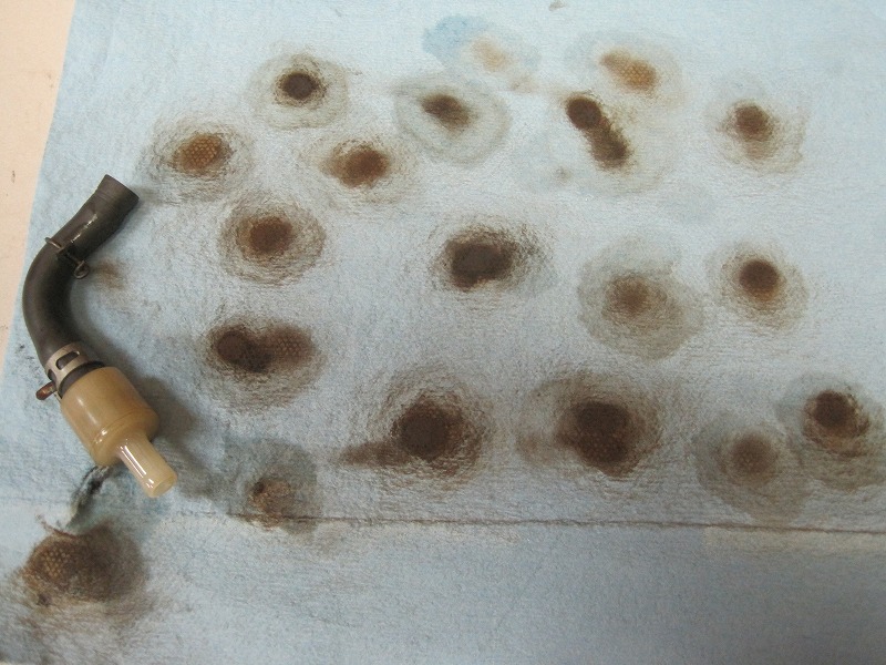 ガソリンフィルターにガスを通し、エアを吹く事20回。