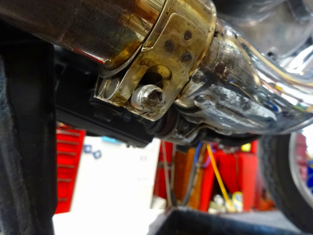 サイレンサーボルトが削れている、このポジショニングで結構寝かせますね。