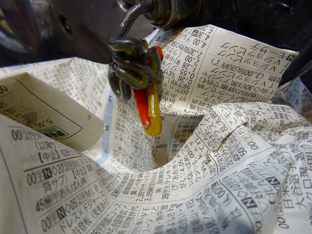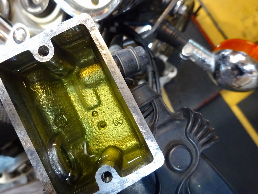 フィルターオイル、時間経過で下部に移動するとフィルター上部がカラカラになります。