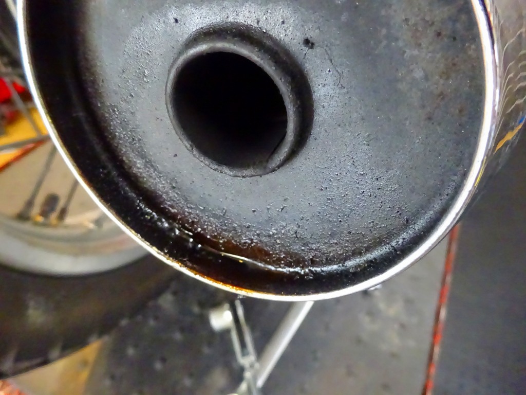 サイレンサーエンドに油分。