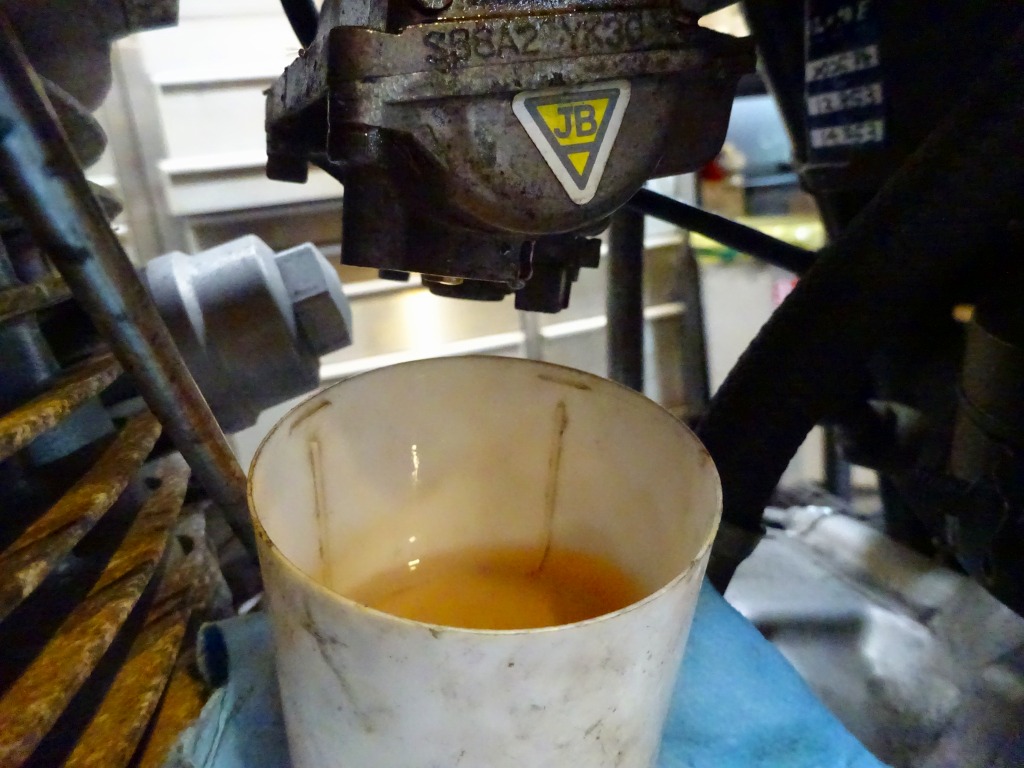 異物等が無いか確認、ケーブル注油をするとキャブに油分が。