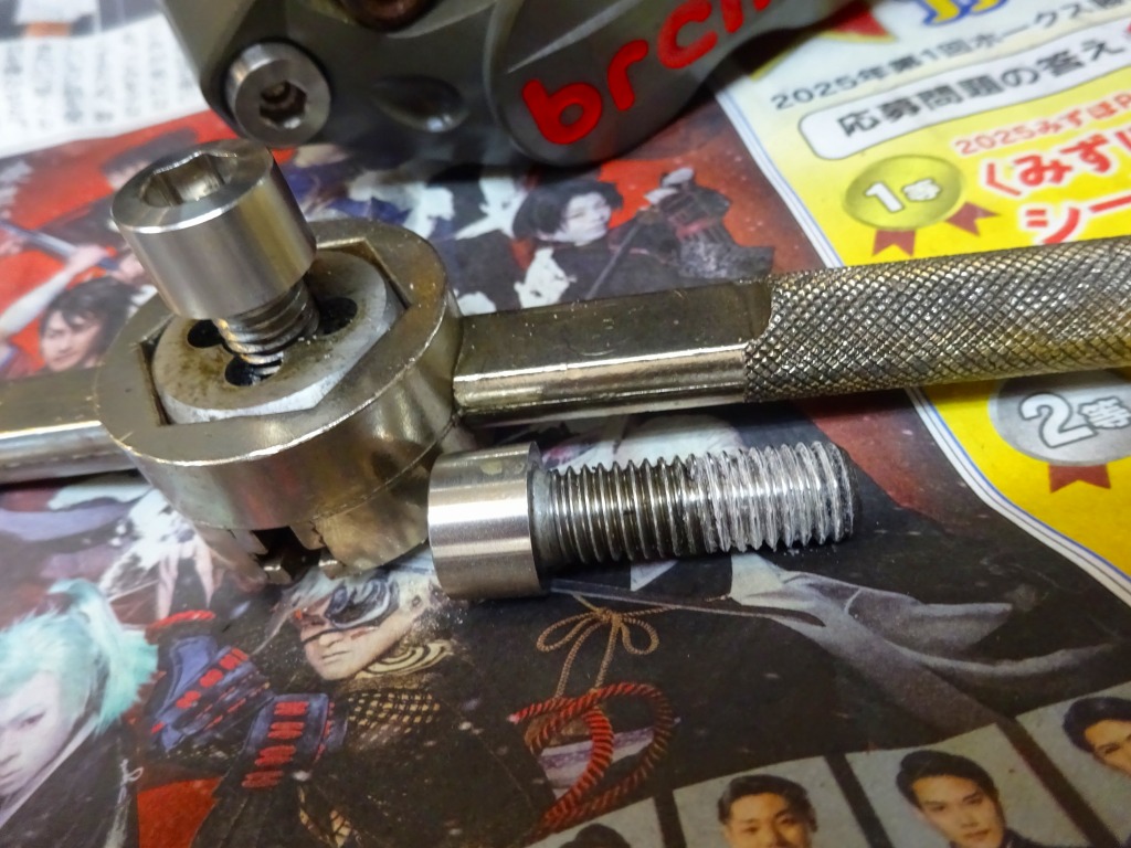 キャリパーボルト、以前交換時に頭を舐めた模様…。
