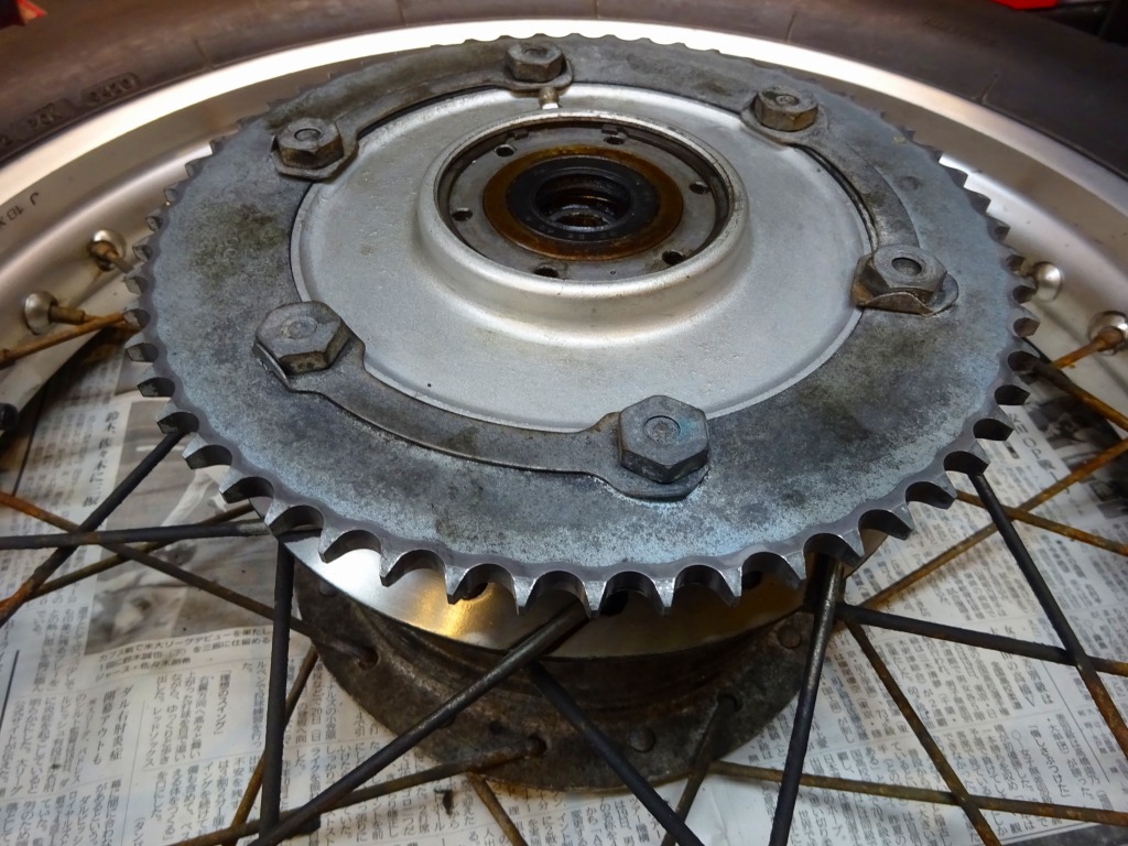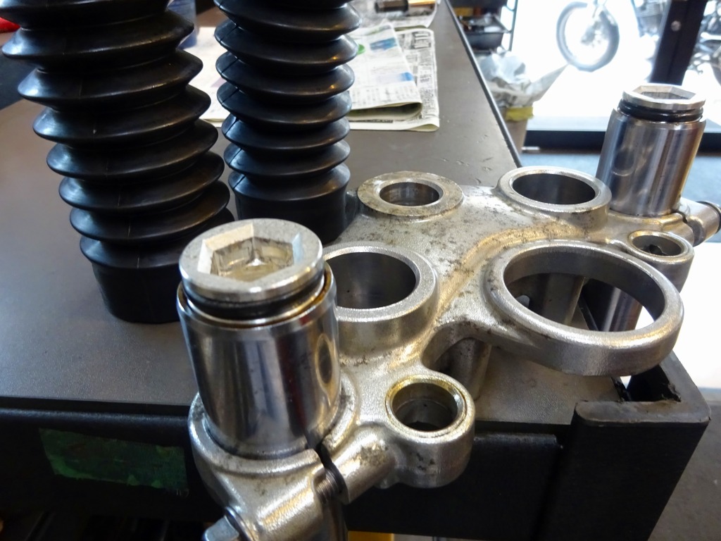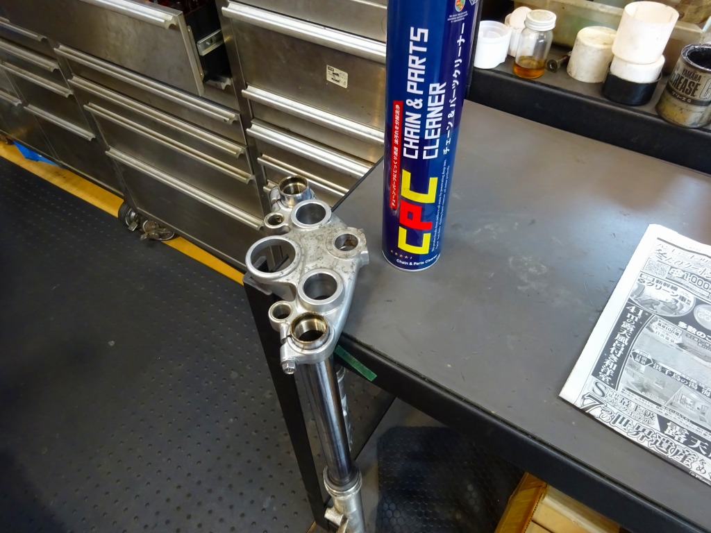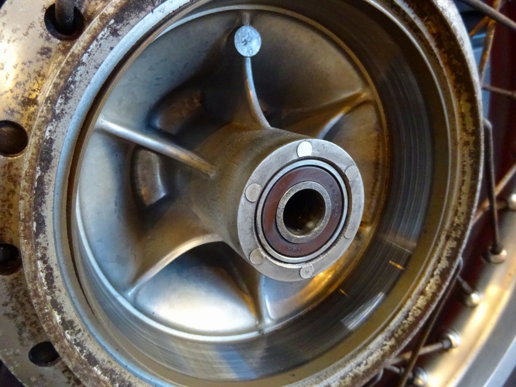 フォークオイル交換、エア抜き中にフロントホイール点検。