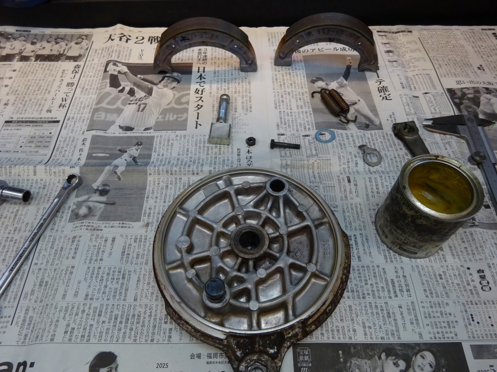少し磨く、フレーム側なので外さないと手を入れにくい。
