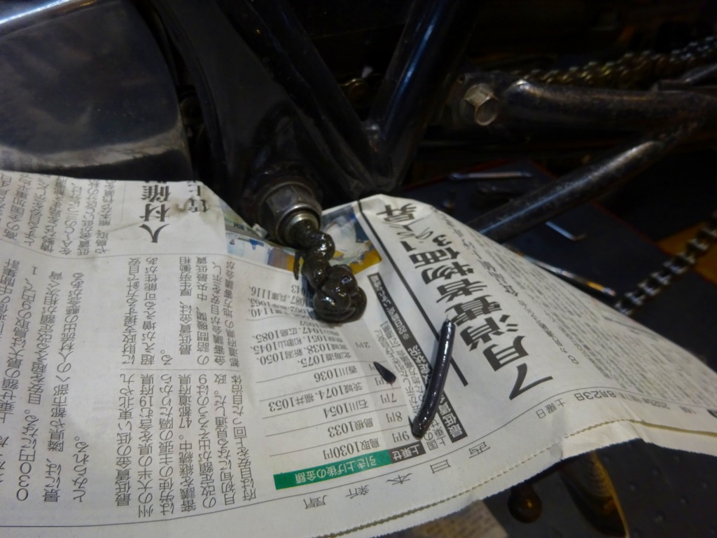 ルーチンのキックアームとサイドスタンドに硬めのチェーングリス塗布。