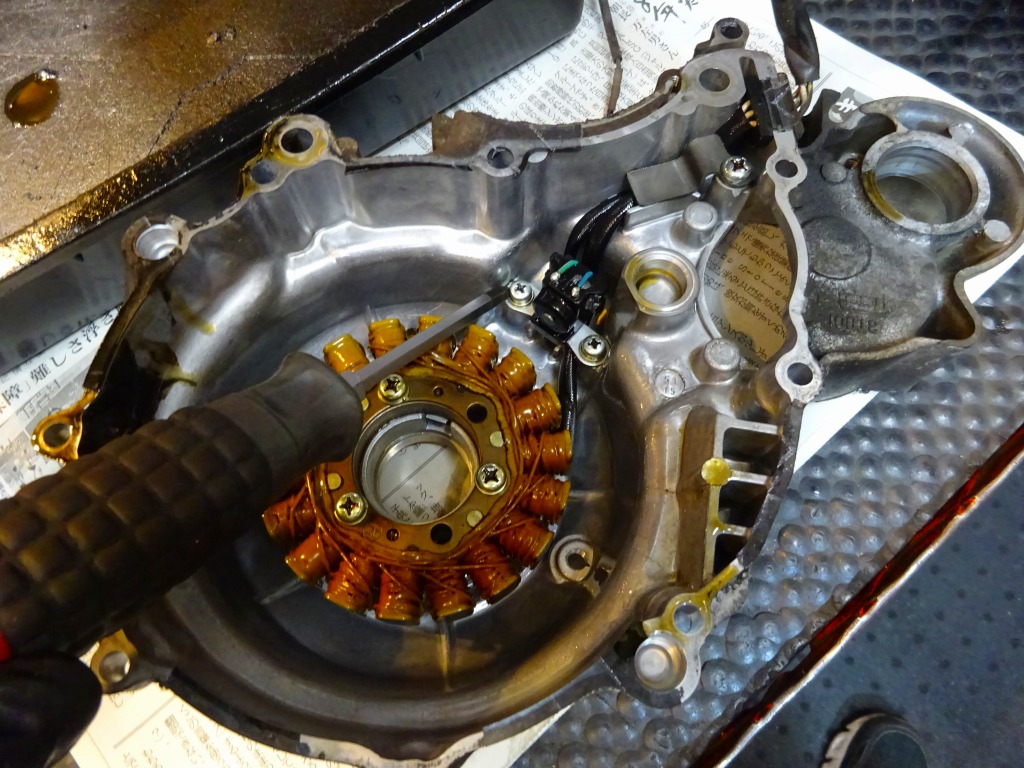 ジェネレーターはケースカバー側、6本のボルトがかなり硬い。