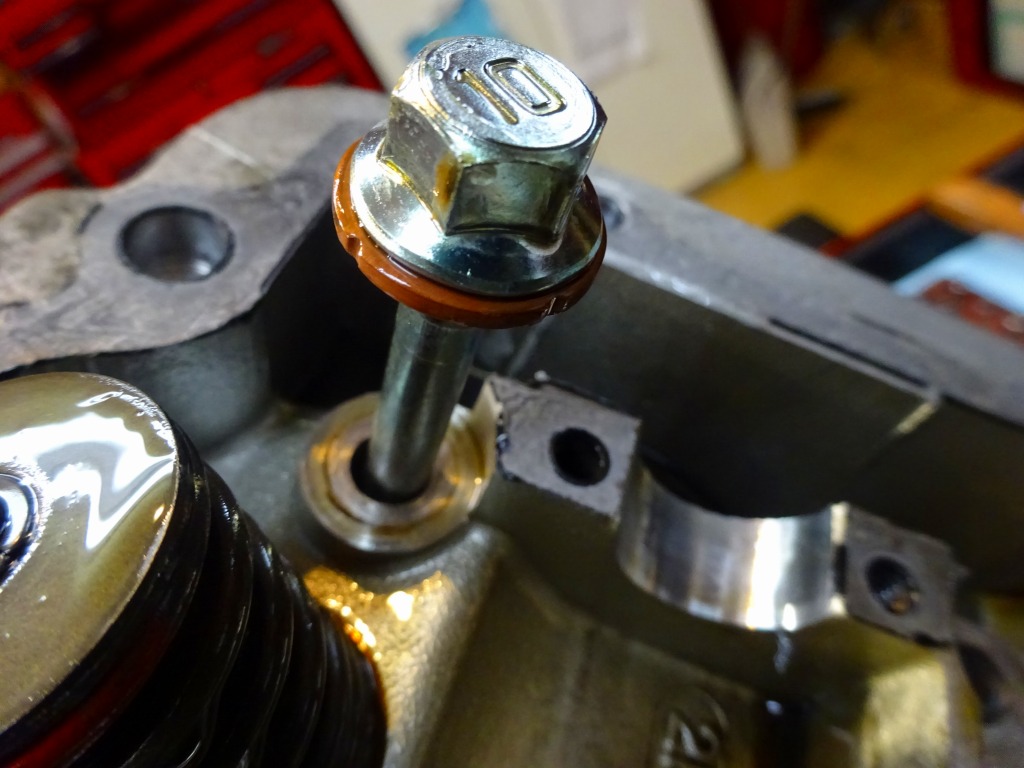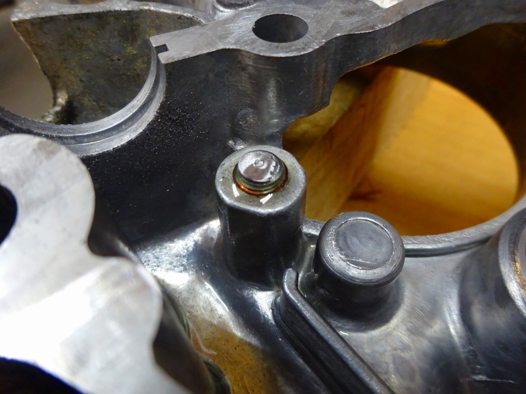 この銅ワッシャー、4本あるうちココだけです。残り3本はスチールワッシャー。