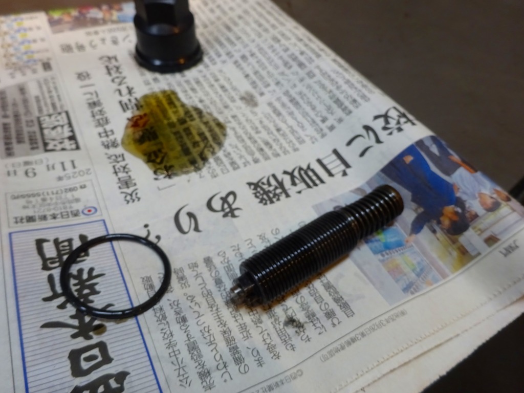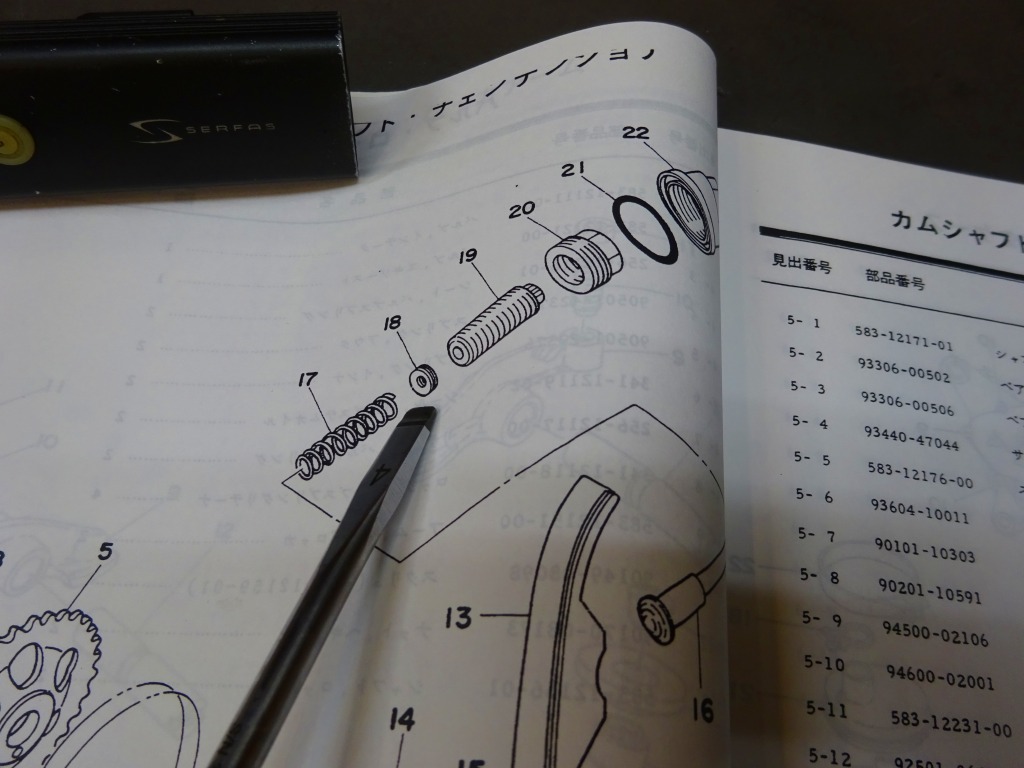 テンショナーがカムチェーンガイドを押せなくなっている。