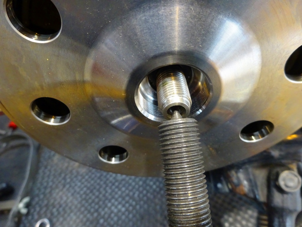 フライホイール取り外し、ヤマハ指定特殊工具をそのまま使うとネジ山を痛める事も。