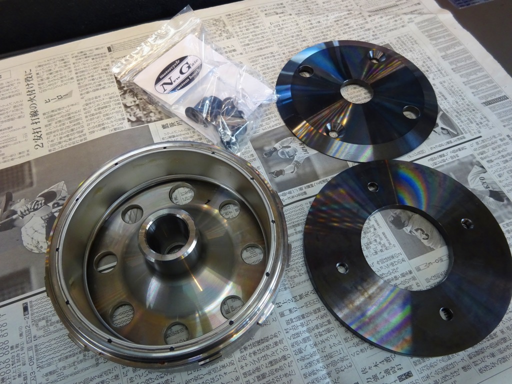 キャブ仕様フライホイールと比べて軽量になったインジェクションモデル。