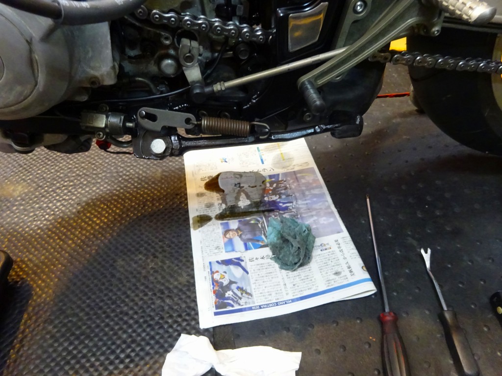 こちらも覚悟しておりました、タンク裏ガソリンコックからの燃料漏れ。
