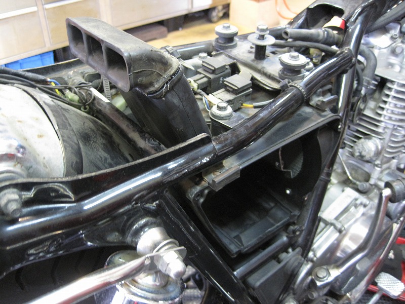 あまり目にする事の無いキャブレター側からのエアBOX内。