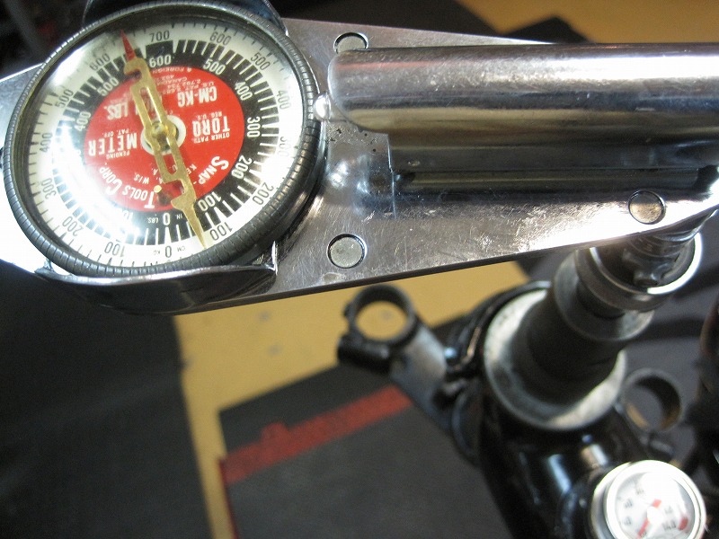 トルクメーターを用いて二回に分け締め付け調整。
