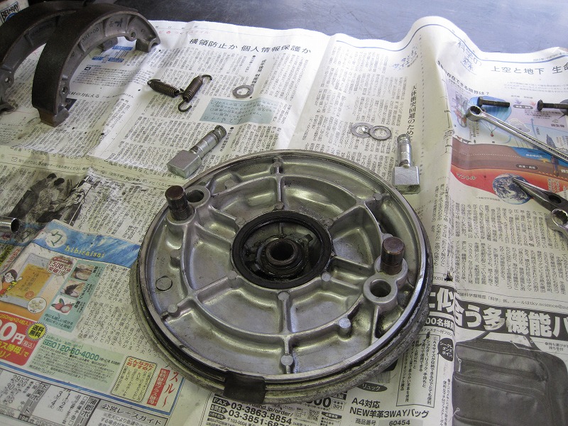 リアホイール点検、ブレーキ清掃&グリスアップ。