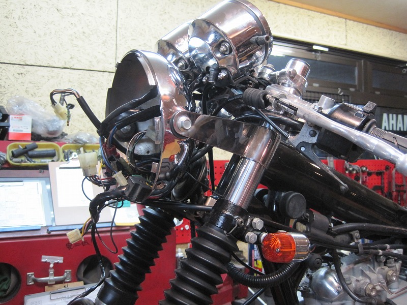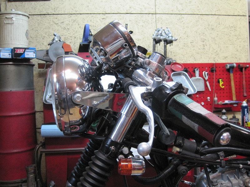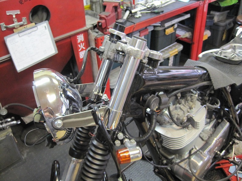 トップブリッジ脱着を数回、ハンドルロック加工。