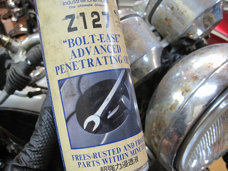 固着による作業時間が…になるのを少しでも避ける為に「超強力浸透液」を塗布。