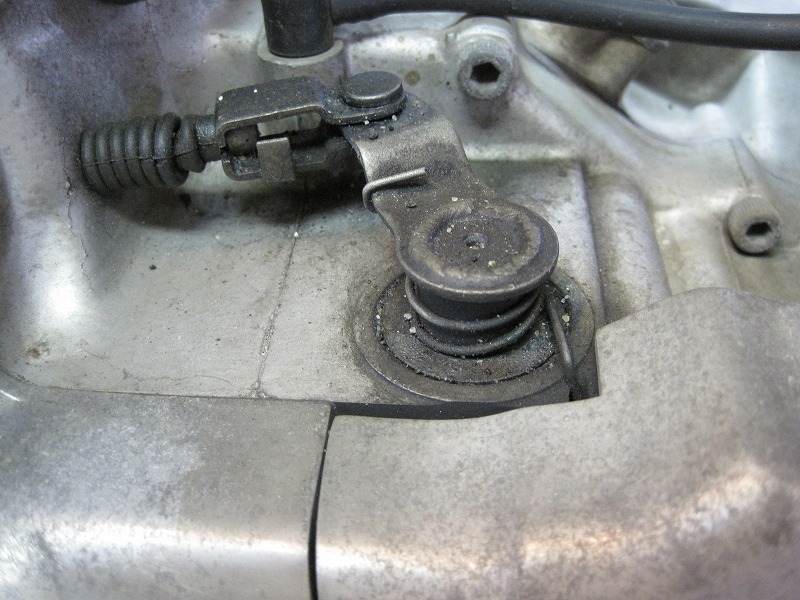 プッシュレバー下部のオイルシール、滲みが出てきてますね。