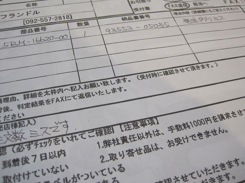 返品手数料は¥1,000、部品が¥200の物でも¥5万の物でも。