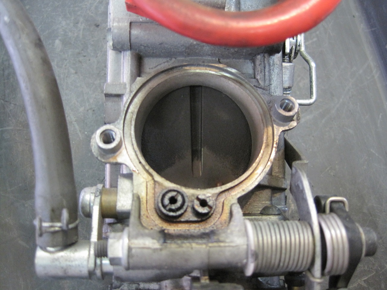 スロットルバルブ周辺のダスト。