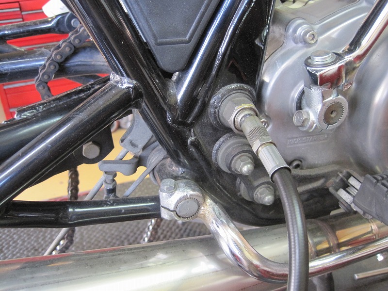 なのでステンレスブレーキホースに変更、後にキャリパー変更時に備えてのフィッテング。