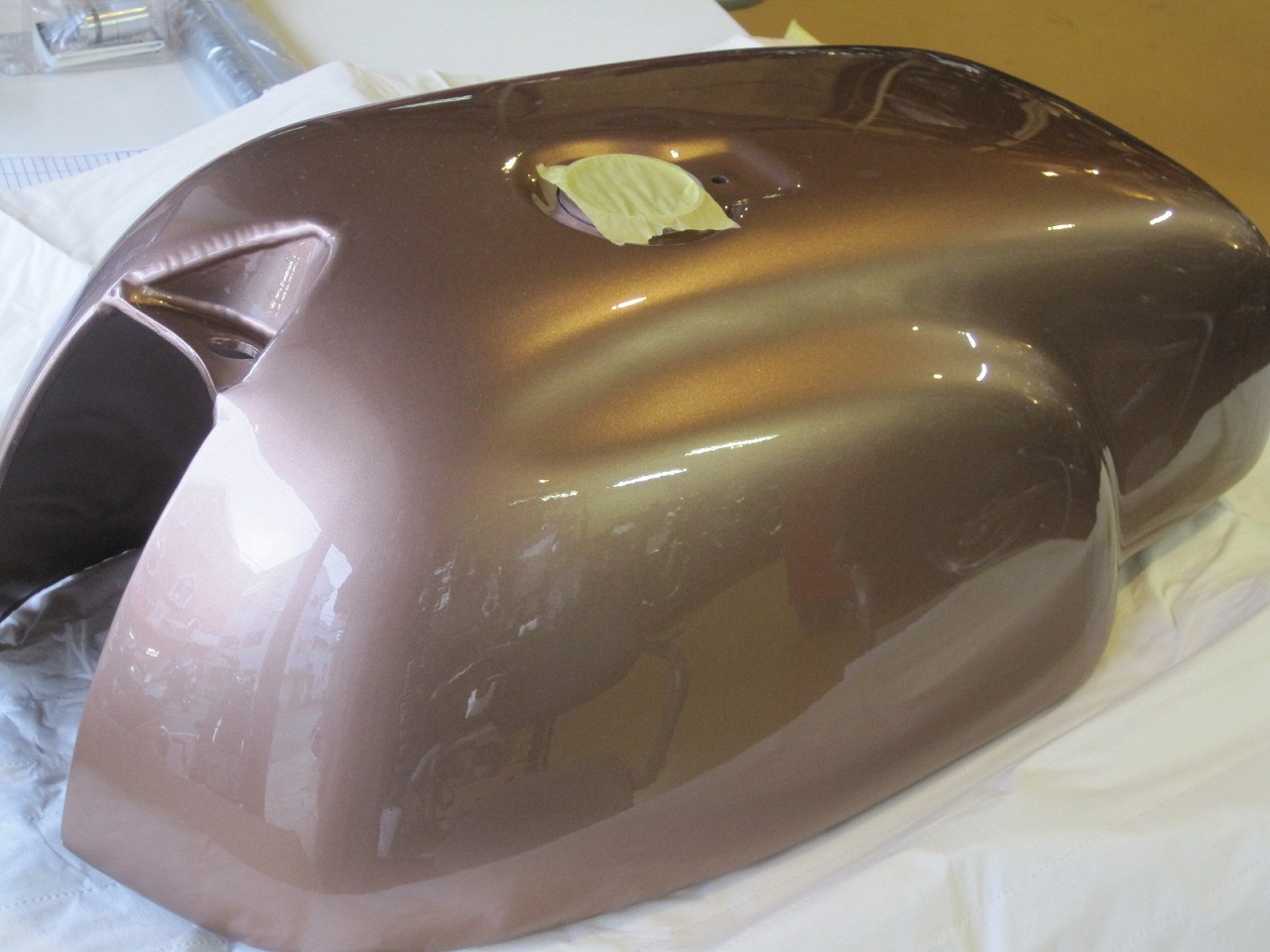 フュエルタンクの板金塗装。