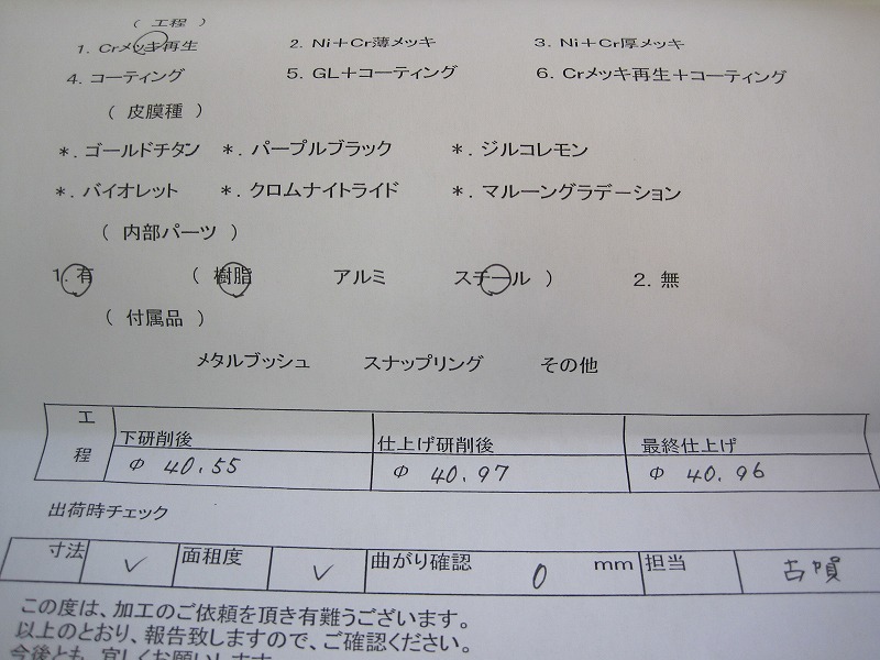 他の部品の表面加工もそうですが「指示書」に良く目を通しましょう。