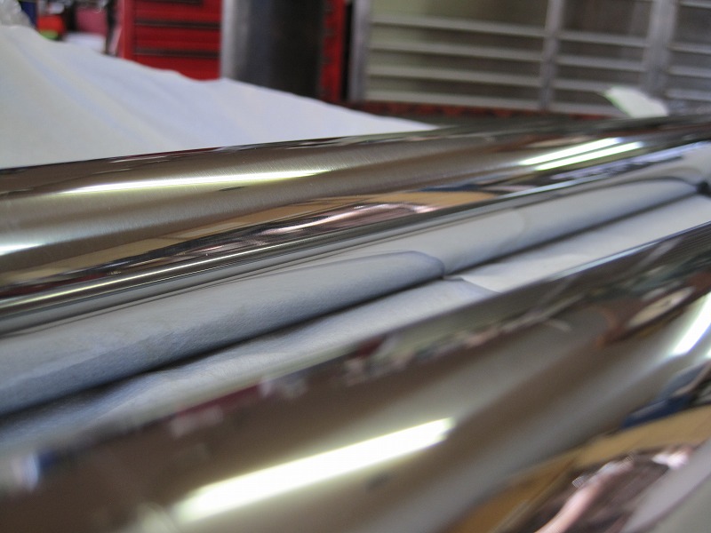 再メッキを終えたインナーチューブ洗浄。