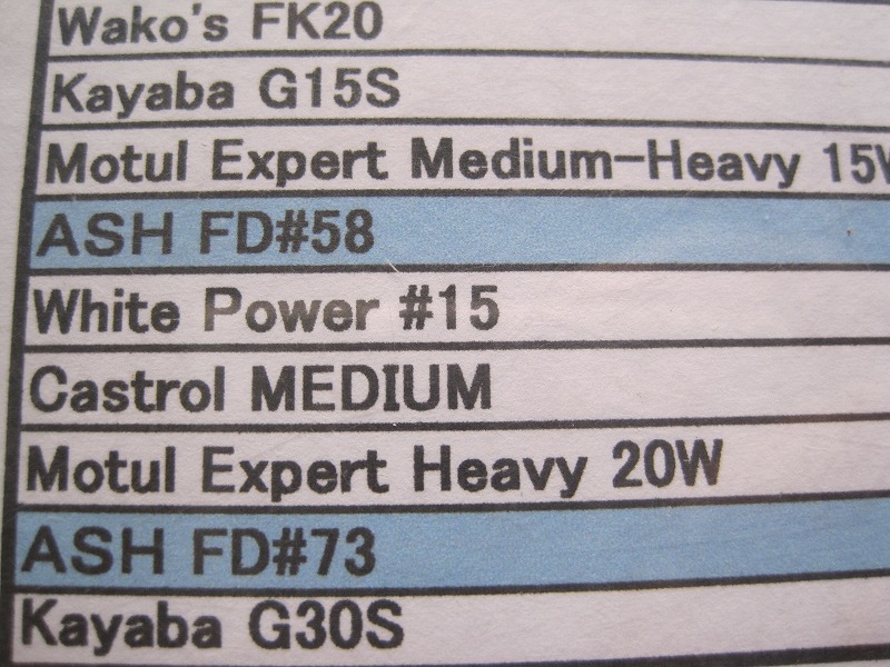 ASHのフロントフォークオイルは4種類在庫致しております。