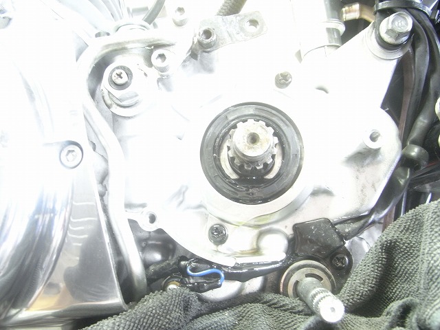 ドライブスプロケットを取り外すと「オイル分多くネ?」状態。