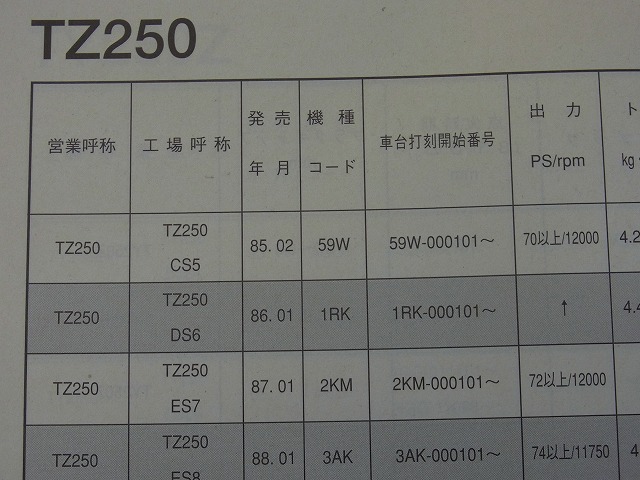 1986・TZ250のフロントフォーク仕様、サービスマニュアルは所有してます。
