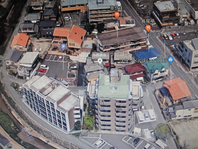 Pの横に在るクルマ、その下の軽自動車が止まっている場所が当店駐車場です。
